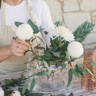 La malla de gallinero es una alternativa ecológica a la espuma floral húmeda, ya que se puede reutilizar.